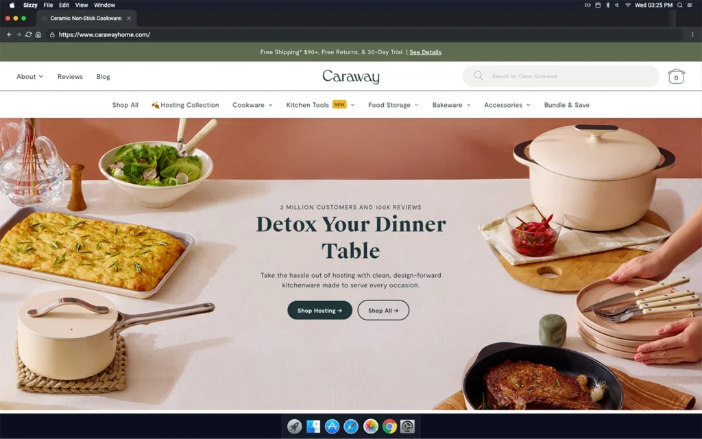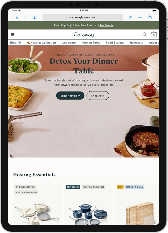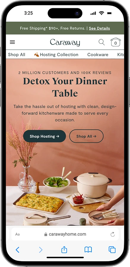 Caraway utiliza promociones y descuentos en momentos clave para impulsar las ventas. Por ejemplo, por el día de la madre, tenían a la venta dos bundles de productos con un 15% de descuento.