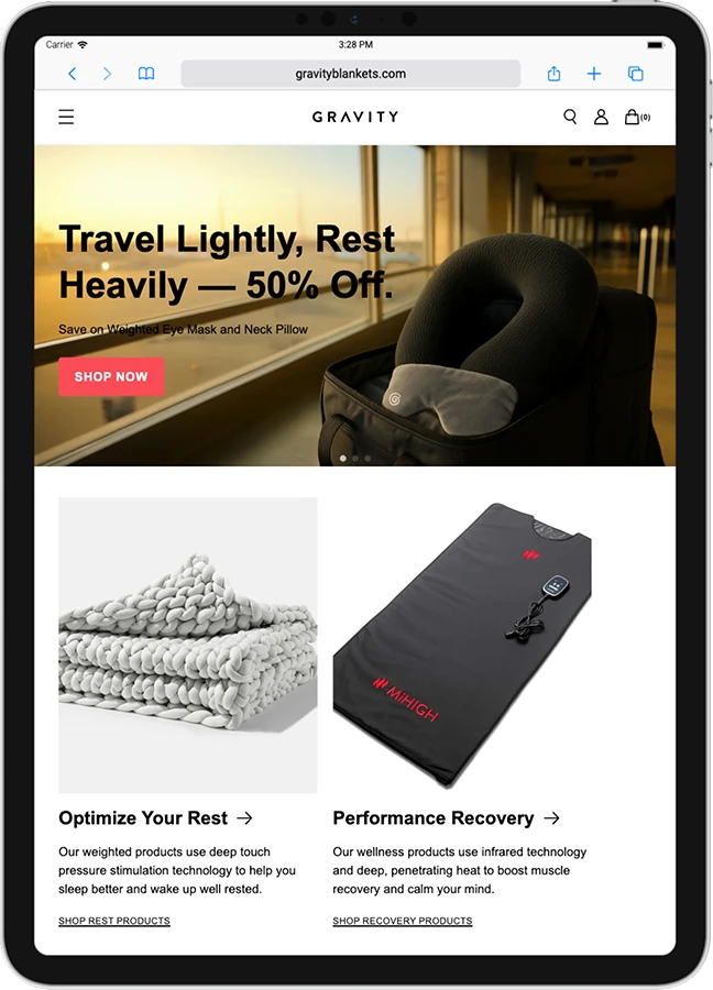 Gravity Blankets es un e-commerce enfocado en la industria del bienestar y el descanso con sus innovadoras mantas con peso, diseñadas para proporcionar una experiencia de sueño mejorada y reducir el estrés y la ansiedad.