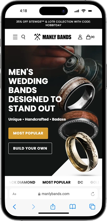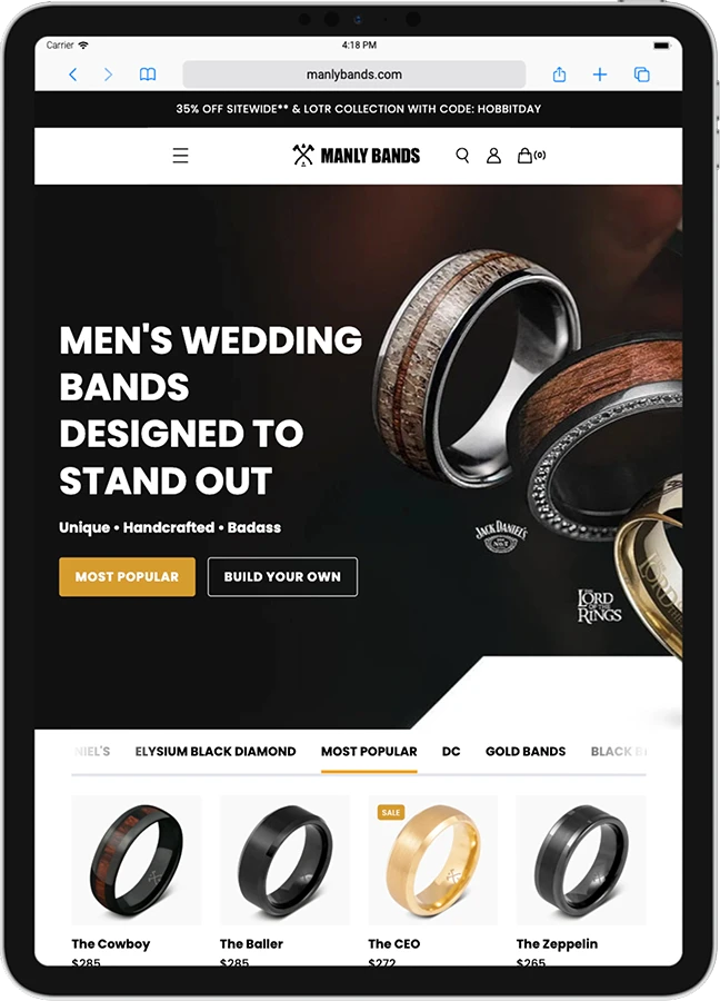 Pues ese es uno de los múltiples anillos que encontrarás en Manly Bands que se caracteriza por utilizar materiales poco convencionales, pero que son de alta calidad.