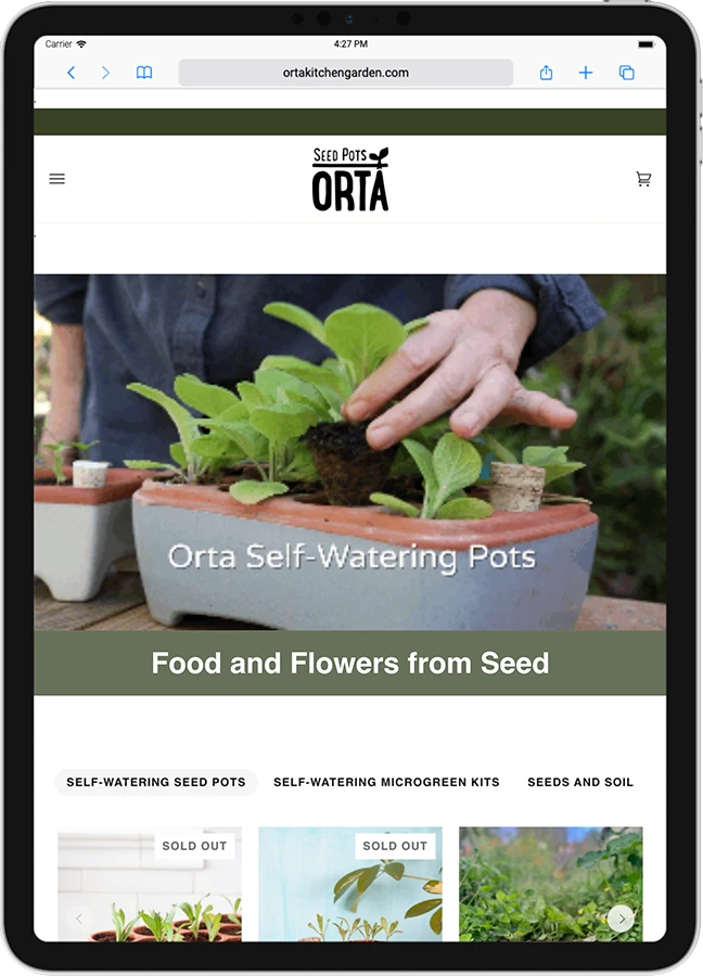 Orta Gardens es una marca que vende productos para jardinería a pequeña escala: macetas de autorriego, kits de microverduras y semillas.